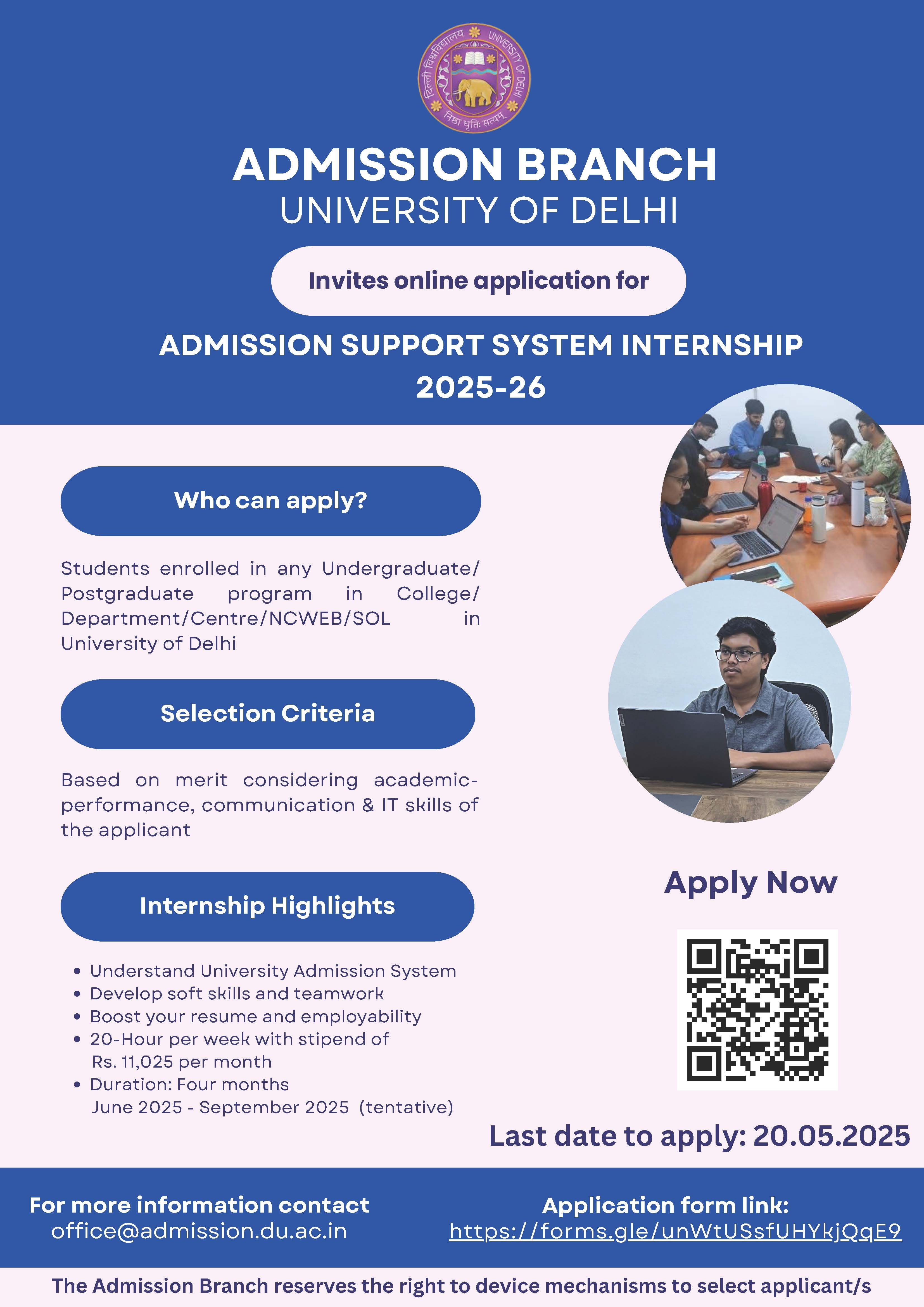 Candidates must refer the eligibility and Test papers of the University of Delhi before applying.